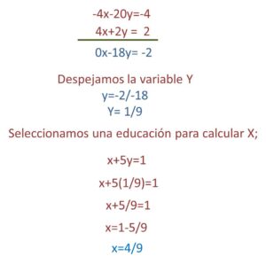 conocido el valor de Y lo sustituimos en cualquiera de las ecuaciones anteriores para conseguir el valor de X;